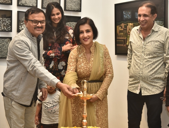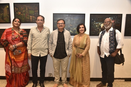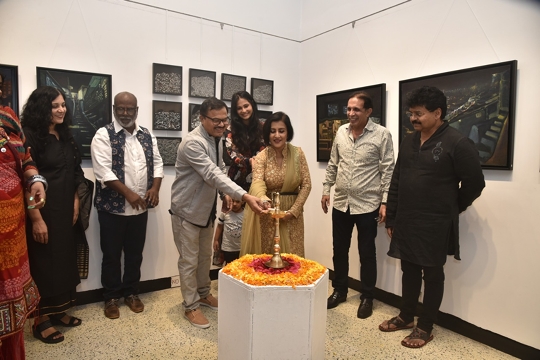 His exhibition at Jehangir Art Gallery, Gallery 3, titled Landscape of Identities was inaugurated by Padma Shri Sudharak Olwe, art collector Parvez Damania, playback singer Madhushree and her composer husband Robby Badal, actress Rupali Suri, celeb nutritionist Rusha Madhwani and director-egalitarian earth warrior Anusha Srinivasan Iyer, sculptor-curator Sanjay Nikam among others.