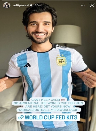Student of the Year 2 fame actor Aditya seal is a big football fan and often seen playing football with celebrities. As the FIFA World Cup fever is rising, the celebrity donned his favorite team’s jersey and will be seen shouting for Argentina in the World Cup.