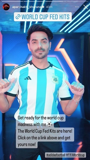 Aparshakti Khurana is seen sporting an adidas Argentina jersey. He will be seen rooting for the team throughout this tournament. The talented actor and singer is a huge football fan, who is often seen playing and supporting the game when he isn’t working.