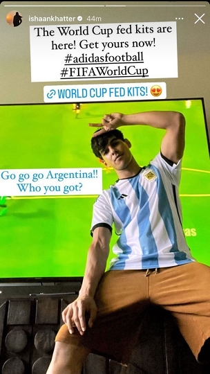 Bollywood actor Ishaan Khattar is a football fan and is often seen playing football with other celebrities. As the FIFA World Cup is about to begin, the actor has been seen supporting his favorite team, Argentina on Instagram wearing the jersey.