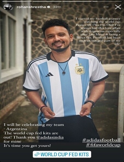 Rohan, a famous celebrity photographer is a passionate football fan and frequently seen playing football with stars like Ranbir Kapoor, Arjun Kapoor and more. He has confirmed that he will be cheering for Argentina this year through a social media post.