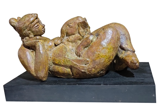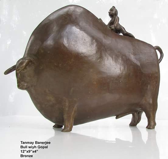 Tanmay Banerjee: His sculptures in Bronze illustrate animals and other subjects which are inspired by rural life of Bengal and culture in that region. These are out of our daily life observations. He has tried to put forward their forms and emotions through his sculptures of Bull or Nandi – an animal which is considered as a symbol of strength, power and the carrier of Lord Shiva etc. His works are creative and appeal to all due to their aesthetic standards and visual perspectives.