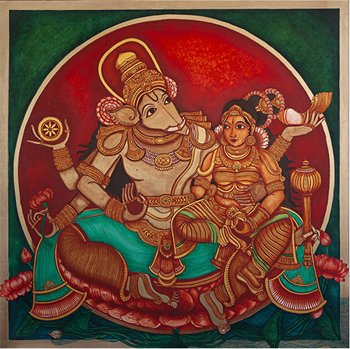 This exhibition is a collection of large format paintings celebrating her beauty, her boon giving and nurturing ability. She also presented Lord Vishnu, god of love, benevolence and forgiveness in the form of ” Varaha” protecting her for the preservation of the universe.