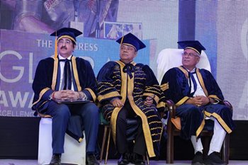 Raipur: He has done it again! Renowned media personality and dynamic educationist, Sandeep Marwah, has been honoured with a Doctorate in Literature (D.Lit) by a prestigious French university at Raipur for his outstanding contribution to the media industry. The degree was presented to him by the Chief Minister of Chhattisgarh, Bhupesh Baghel and Dr Vivek Choudhary, Vice President of Ecole Supérieure Robert de Sorbon, France.