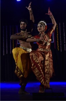 Very skillfully she related it to the Vilambit and Drut laya.highlighted the nondual essence ensuing in their togetherness. One among the City’s own Kuchipudi Guru Kalamandalam Vijayshree Pillai reached out with an interesting choreography invoking Goddess Saraswati as the epitome of wisdom nullifying ignorance Her dedicated disciples complimented the theme in all oneness.