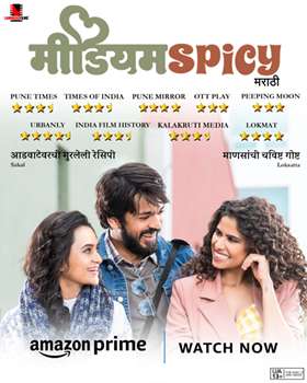 ‘मीडियम स्पाइसी’ हा चित्रपट ॲमेझॉन प्राइम या ओटीटी प्लॅटफोर्मवर बघायला मिळेल. त्यामुळे ज्या प्रेक्षकांचा हा चित्रपट थिएटरमध्ये बघायचा राहिला असेल, त्यांच्यासाठी ही सुवर्णसंधीच आहे. दिग्दर्शक मोहित टाकळकर यांनी एका वेगळ्या आणि अनोख्या विषयावरील चित्रपट आपल्यासमोर सादर केला आहे, याला प्रेक्षकांनीही उत्तम प्रतिसाद दिला होता. या चित्रपटाला अनेक पुरस्कार सोहळ्यात नामांकनेही मिळाली. मटा सन्मान, प्रवाह पिक्चर पुरस्कार, फिल्मफेअर अॅवॉर्ड, सकाळ प्रीमियर अॅवॉर्ड, बॉलीवूड फेस्टिवल नॉर्वे, रिव्हर टू रिव्हर फिल्म फेस्टिव्हलमध्ये क्लोजिंग फिल्म, स्टुटगार्ट फिल्म फेस्टिव्हल, साऊथ एशियन फिल्म फेस्टिवल, ढाका इंटरनॅशनल फिल्म फेस्टिवल, पुणे इंटरनॅशनल फिल्म फेस्टिवल अशा अनेक नामांकित पुरस्कार सोहळ्यात व फिल्म फेस्टिवल्समध्ये ‘मीडियम स्पाइसी’ला मानाचं स्थान मिळाले. आता हा चित्रपट ओटीटीवर येत असल्याने तो केव्हाही, कधीही, कुठेही बघायची मुभा प्रेक्षकांना मिळेल.