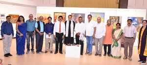 Ganesha Somayaji’s artworks provide an immersive exploration of the rich and diverse world of landscapes and seascapes seeped in realism and hyperrealism with complete control over the unforgiving medium of watercolours. Landscape art has been an integral part of human expression for centuries. The artist presents a panoramic view of the once idyllic and serene green and blue hues of the coastal belt, now rapidly losing their beauty to globalisation and environmental damage. He revisits the temples and churches of those places as a silent prayer for their protection. In an era marked by environmental concerns and climate change, landscapes take on new significance. The paintings also address contemporary environmental issues through the lens of art. The artist especially uses their work to provoke reflection on the fragility and resilience of our natural world, inspiring us to consider our role in its preservation.