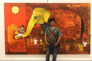 Suresh Gosavi is an ardent devotee of painting. He who forgets everything and gets absorbed in devotion The mind gets peace and it gives a new hope and energy, we can call it Shakti.To move from depression to concentration, from happiness to contentment requires devotion and faith In any form. This is confirmed by Suresh Gosavi’s picture series ‘Bhakti & Shakti’.The form of curiosity and innocence is children, the form of devotion is Varkari, the form of power is Mahakaya Elephants, unique forms of Gods and Goddesses in shrines from simple arrangement of many symbolic elements A devotional, pleasant and introspective experience while watching the paintings through effective colouring gets All artists should have this experience.