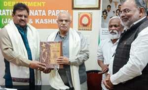 Sh Ashok Koul, General Secretary(Organisation) BJP was facilitated by prof Dr Kulbhushan Mohtra, Ambassador of American University USA ( J&K Chapter) and Dr Romesh Khajuria, Chairman, Wool & Woollen Export Promotion Council(WWEPC), Ministry of Textiles Govt of India on behalf of world renowned scientist His Eminence Dr Madhu Krishan Chairman & Reactor of United Nations University for Global Peace(UNUGP) & American University for Global Peace(AUGP) during a function in Jammu,